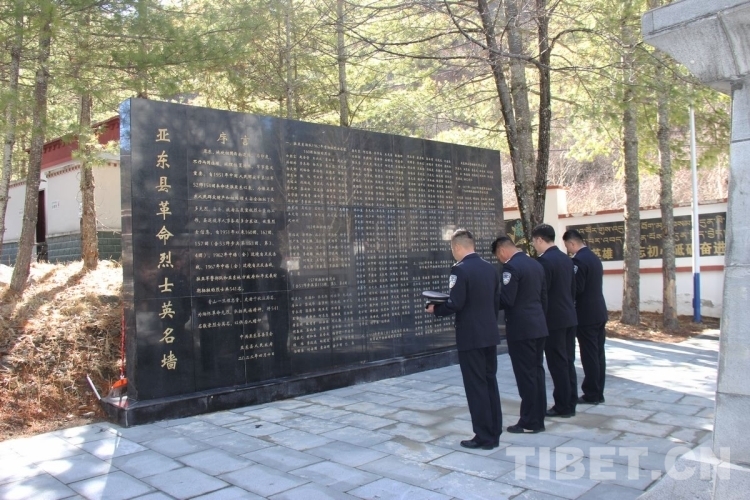 圖為西藏邊檢總站執(zhí)法調(diào)查支隊(duì)執(zhí)法調(diào)查七隊(duì)民警向亞?wèn)|縣革命烈士英名墻默哀 攝影:李渠成