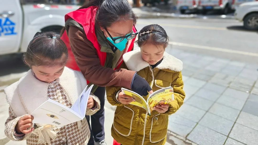 圖為亞東縣帕里鎮(zhèn)婦聯(lián)組織巾幗志愿者、派出所民警、學生代表聯(lián)合開展“閱讀勵學心 同享齊閱讀”為主題的系列活動現(xiàn)場