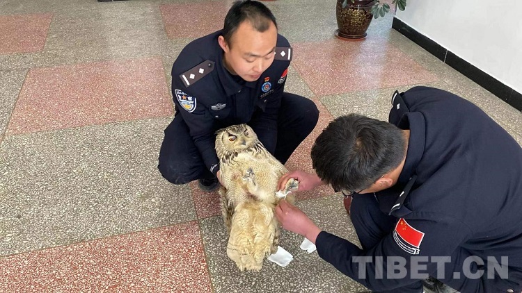 中國西藏網(wǎng)訊 “警察同志,我們?cè)谕窘?jīng)瑪旁雍錯(cuò)的時(shí)候撿到一只受傷的貓頭鷹。”日前,西藏自治區(qū)阿里邊境管理支隊(duì)巴嘎邊境檢查站民警在神山加油站巡邏執(zhí)勤中接到游客求助。