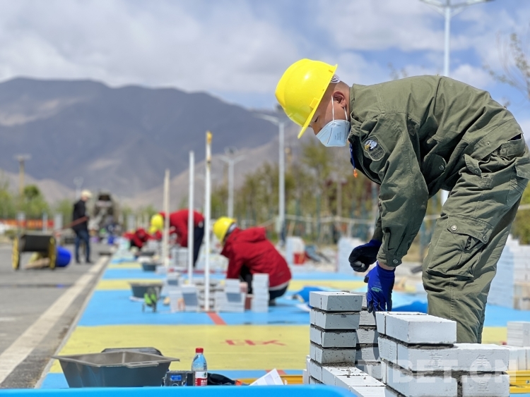 圖為參賽選手進(jìn)行砌筑項(xiàng)目比賽 攝影:德吉卓瑪