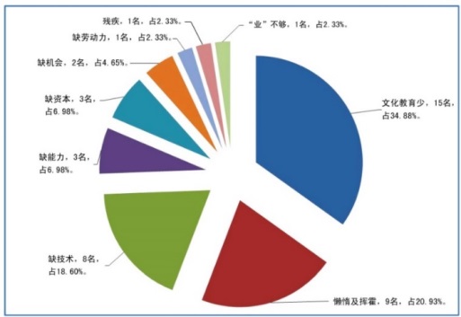 圖為114戶農(nóng)牧民對(duì)貧困根源首選項(xiàng)的結(jié)構(gòu)分布圖