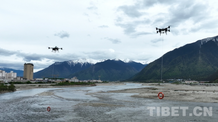 按照演習(xí)方案,此次演習(xí)包括應(yīng)急響應(yīng)、力量投送、地震救援處置行動(dòng)、落水車輛救援行動(dòng)、偏遠(yuǎn)山區(qū)救援行動(dòng)、森林火災(zāi)撲救行動(dòng)等內(nèi)容。圖為林芝市森林消防支隊(duì)無人機(jī)在“應(yīng)急使命·西藏2023”抗震救災(zāi)實(shí)戰(zhàn)化演習(xí)中從空中向救援目標(biāo)投送救生圈。