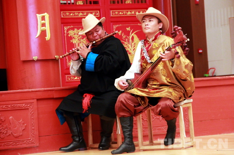 圖為拉薩市城關(guān)區(qū)娘熱民間藝術(shù)團樂師米瑪(左)和拉巴次仁(右)為演出伴奏。米瑪是西藏自治區(qū)級嘎爾傳承人,擔(dān)任藝術(shù)團笛子演奏、司鼓;拉巴次仁是拉薩市城關(guān)區(qū)級喇嘛瑪尼傳承人,擔(dān)任藝術(shù)團扎木年演奏。攝影:劉莉