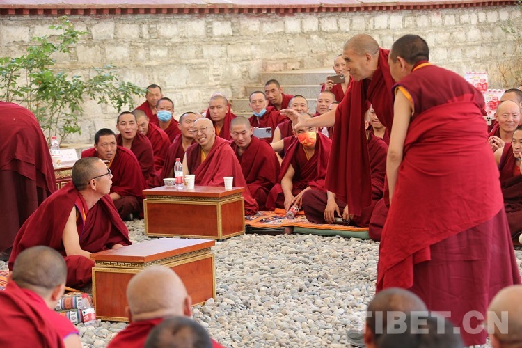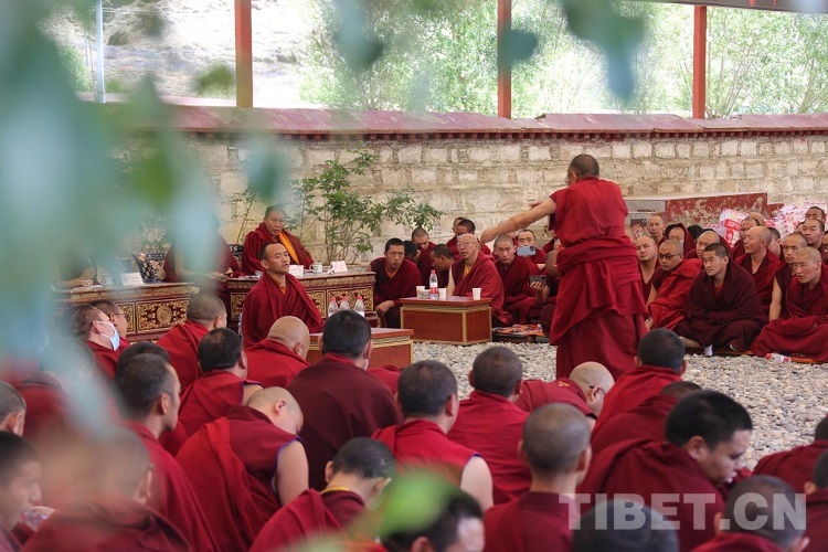 圖為中國藏語系高級佛學(xué)院2023年“拓然巴”高級學(xué)銜班招生考試(西藏)考點的辯經(jīng)考試現(xiàn)場 攝影:王佳豪