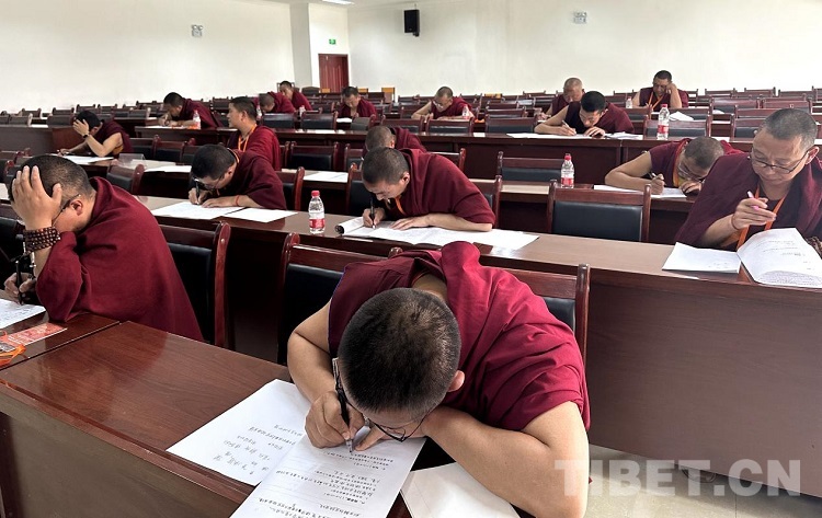 圖為中國藏語系高級佛學(xué)院2023年“拓然巴”高級學(xué)銜班招生考試(西藏)考點的筆試現(xiàn)場