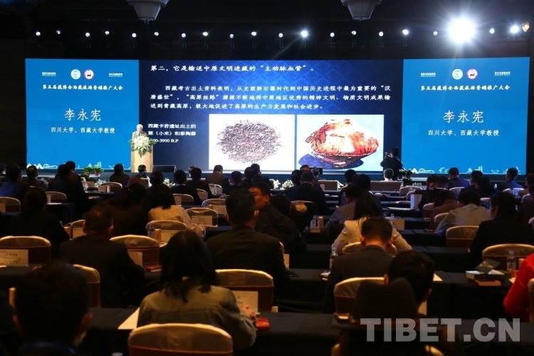 圖為大會(huì)現(xiàn)場(chǎng),四川大學(xué)、西藏大學(xué)教授李永憲介紹“高原絲綢之路” 攝影:王佳豪
