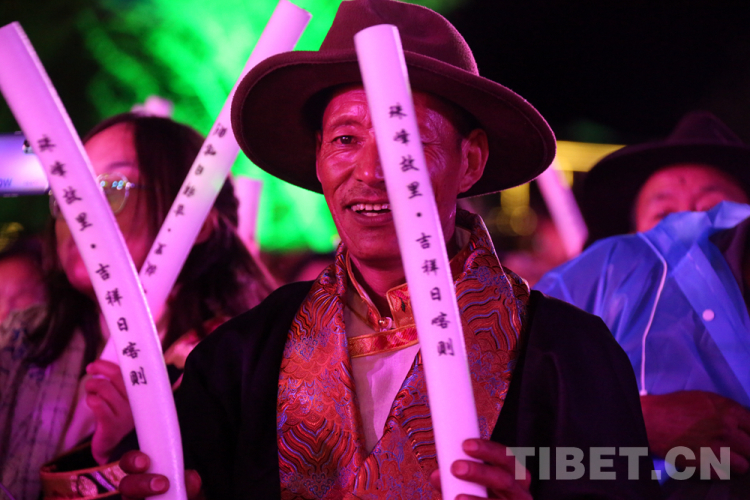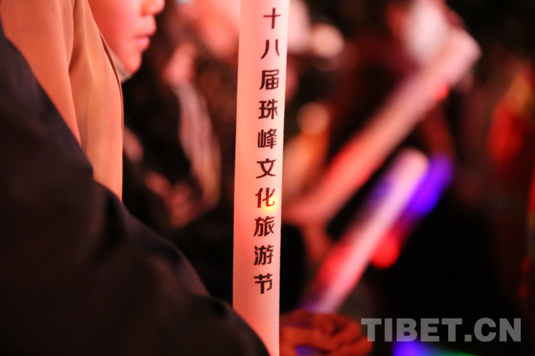 圖為現(xiàn)場(chǎng)觀眾揮舞手中帶有第十八屆珠峰文化藝術(shù)節(jié)字樣的熒光棒 攝影:王佳豪