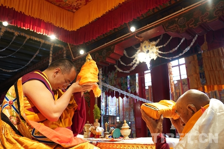 圖為寺院僧眾代表向班禪敬獻(xiàn)曼扎 攝影:王淑
