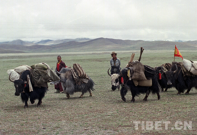 資料圖:藏北草原正在馱物運輸?shù)年笈H海ㄌ普倜?997年攝)
