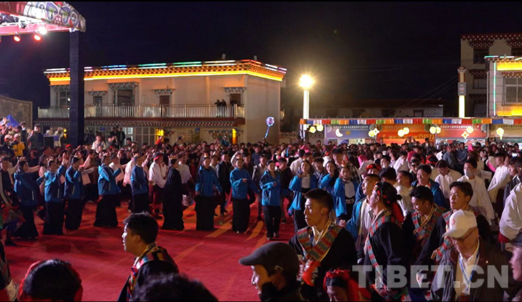 歌舞晚會結(jié)尾時(shí),出席晚會的嘉賓同現(xiàn)場的一千余名群眾及演職人員踩著優(yōu)美動聽的弦音,共跳曾榮創(chuàng)“最大弦子舞教學(xué)課堂”世界紀(jì)錄認(rèn)證,集文化、歷史、民俗元素于一身的弦子舞。(中國西藏網(wǎng) 供稿/芒康縣藝術(shù)節(jié)組委會辦公室)