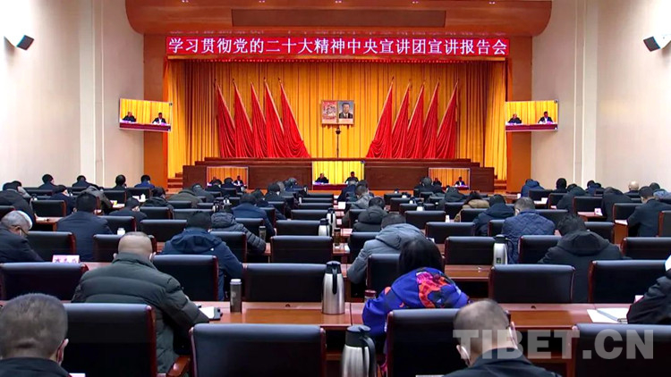 圖為在阿里地區(qū)地委會(huì)堂各單位代表集中收看黨的二十大精神中央宣講團(tuán)報(bào)告會(huì) 來源:中國西藏網(wǎng)