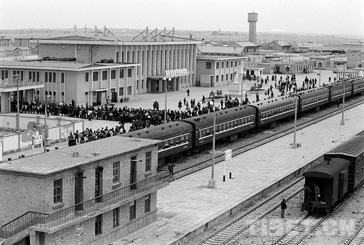青藏鐵路一期工程西寧至格爾木段于1984年建成通車。這是新通車的格爾木車站(唐召明1985年攝)