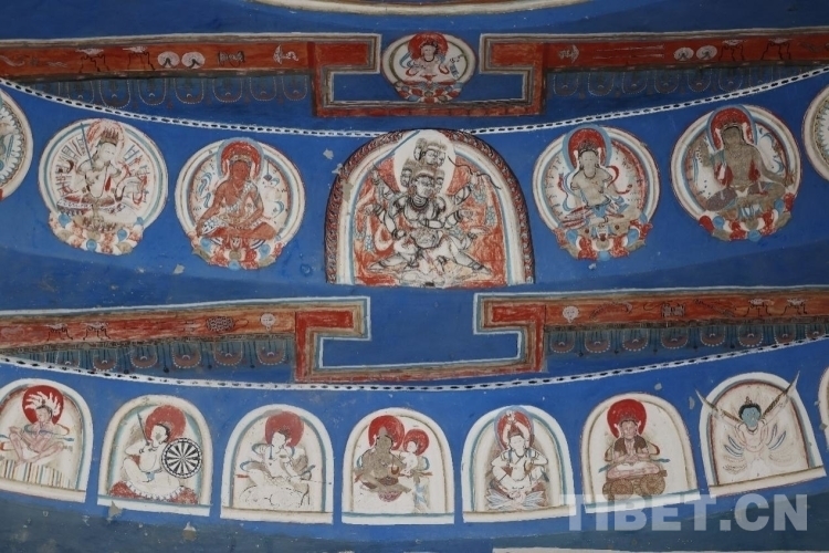 圖為石窟內(nèi)精美的壁畫 攝影:尼瑪多吉
