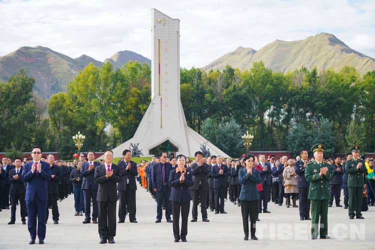 圖為10月1日西藏自治區(qū)慶祝中華人民共和國成立74周年“升國旗、唱國歌”儀式。 攝影:王淑