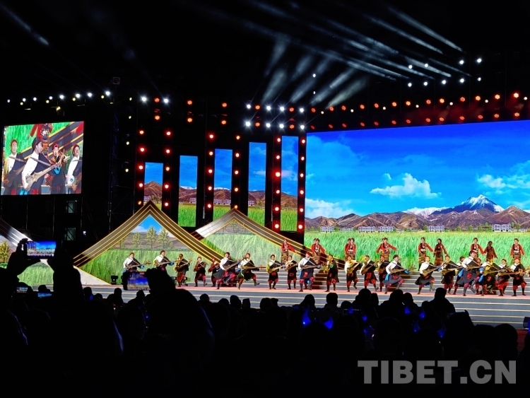 圖為文藝演出舞蹈《飛弦踏青》表現(xiàn)雪域兒女踏著新時(shí)代的節(jié)奏,快步邁向美好未來(lái)的信心與激情 攝影:次旦拉姆