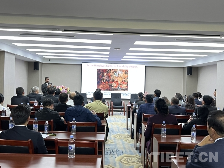 中國西藏網(wǎng)訊 由國家商務(wù)部培訓(xùn)中心主辦、西藏大學(xué)承辦、西藏善緣基金會協(xié)辦的“中國—尼泊爾跨境經(jīng)濟合作智庫和專家研修班”于9月30日—10月7日在拉薩舉行,并于10月7日在西藏賓館舉行“跨越喜馬拉雅,共話民間友好——杜鵑花盛開的國度”專題研討和聯(lián)誼活動。研修班全體學(xué)員及西藏大學(xué)、西藏善緣基金會、尼泊爾中國凱拉斯文化促進會部分來賓參加研討會和聯(lián)誼活動。