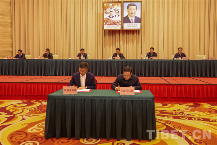 圖為國家文物局和西藏自治區(qū)人民政府簽訂《關(guān)于加強西藏文物保護(hù)利用合作協(xié)議》