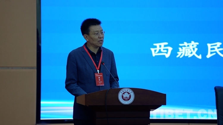 圖為西藏民族大學(xué)黨委副書記、校長羅旺次仁代表學(xué)校致辭 攝影:陳浩力