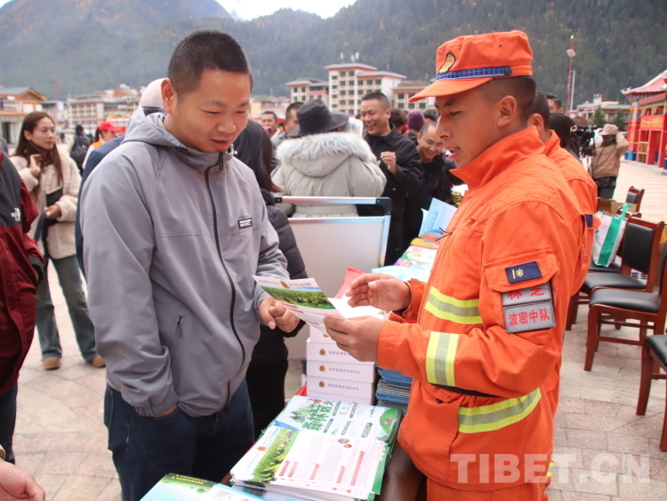 圖為林芝市森林消防支隊(duì)波密中隊(duì)在該縣廣場(chǎng)向市民科普日常消防安全知識(shí)