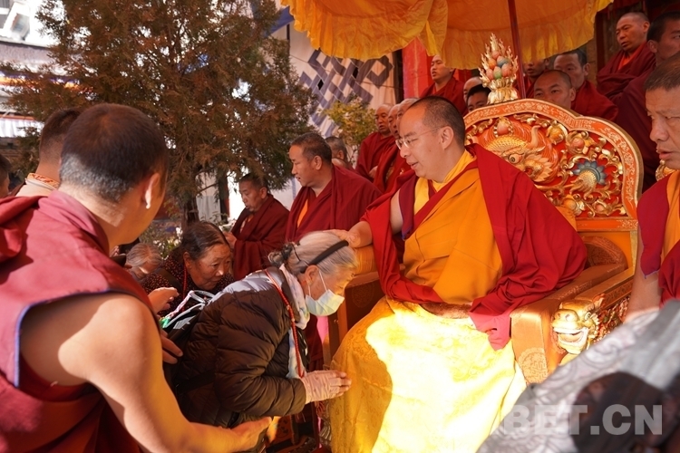 中國(guó)西藏網(wǎng)訊 11月13日,全國(guó)政協(xié)常委、中國(guó)佛教協(xié)會(huì)副會(huì)長(zhǎng)、中國(guó)佛協(xié)西藏分會(huì)會(huì)長(zhǎng)班禪額爾德尼·確吉杰布在西藏日喀則市扎什倫布寺多加大院為信教群眾摸頂賜福,這是近年來(lái)規(guī)模最大的一次班禪摸頂賜福活動(dòng)。