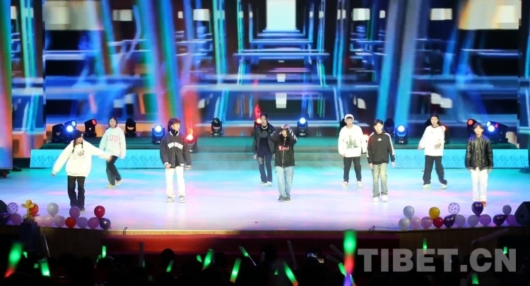 圖為拉薩師范高等??茖W(xué)校學(xué)生代表表演開場舞蹈《街舞freestyle》 攝影:王佳豪