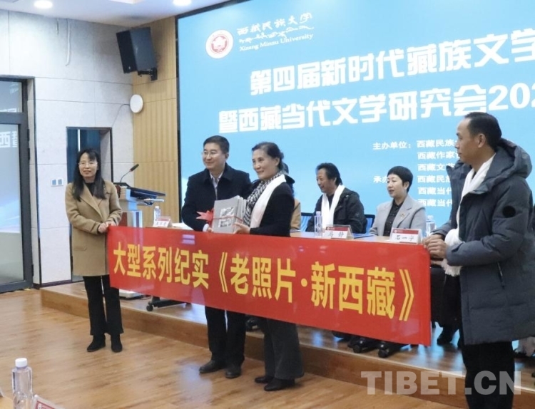 西藏民族大學校友、作家陳琳女士向西藏民族大學文學院贈送了她主編的6卷本大型系列紀實影像集《老照片·新西藏》。她表示,作為西藏文學的一名創(chuàng)作者,首先要思考為誰去寫、寫什么的問題,作家應該堅持為人民而寫作的立場,堅持從民間和現實生活中汲取力量。