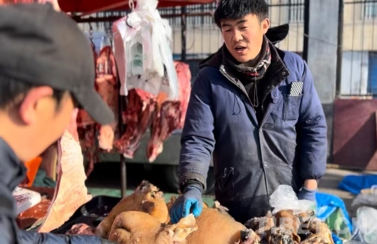 五一早市上,市民在與肉鋪老板砍價 攝影:李一凡