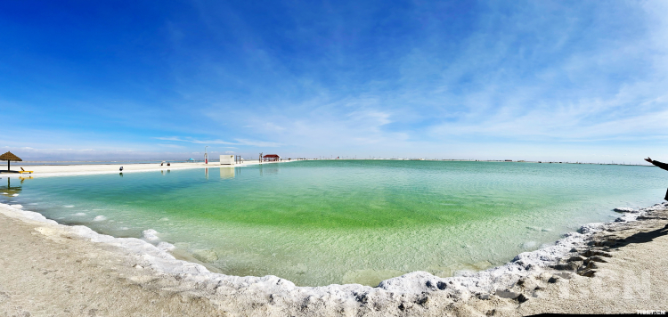 察爾汗鹽湖碧綠色的湖水。李一凡 攝