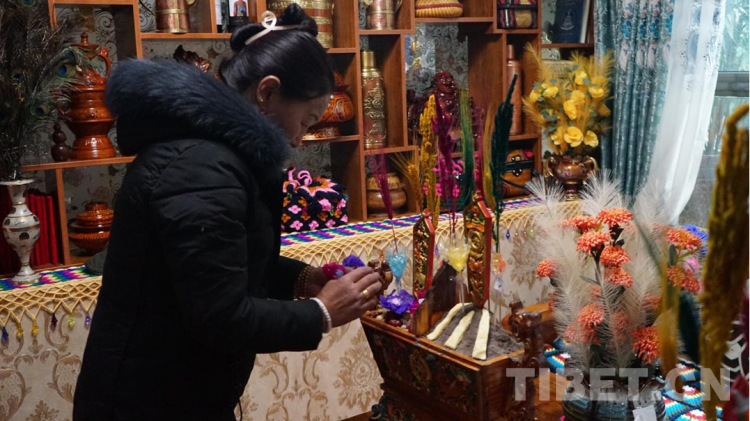 圖為次仁德瓊的二女兒格桑羅吉正在向次仁德瓊敬切瑪 攝影:張曉琪
