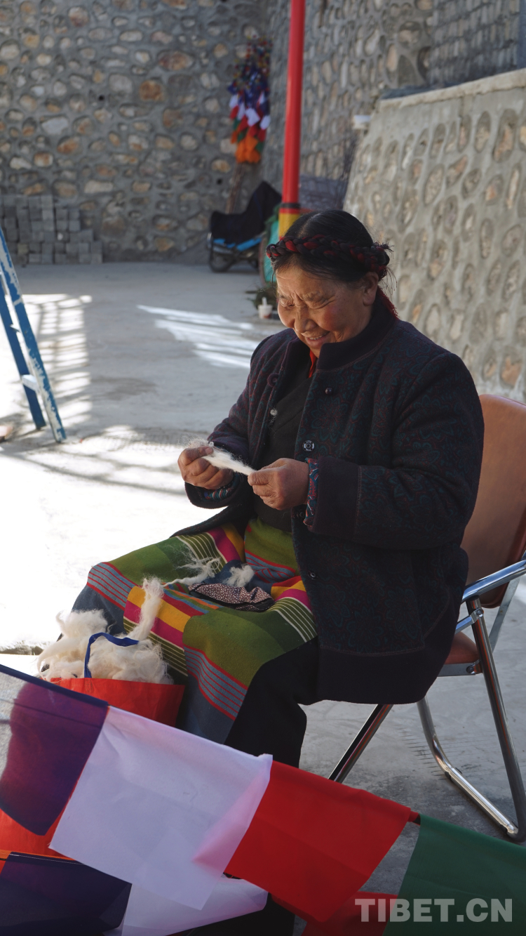 今天去普瑪江塘鄉(xiāng)薩藏村平托阿佳家做了入戶采訪。阿佳有四個小孩,三個女兒一個兒子,大女兒和二女兒正在讀大學,兒子在讀中學,小女兒還在上小學,我們到的時候她正在溫習功課。在介紹起四個讀書的孩子時,阿佳笑了起來,驕傲中帶著些害羞,她眼角的溝壑像有魔法一般撫平了我因高反而煩躁的內(nèi)心。