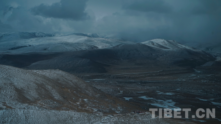 路上雪還在下,山里霧蒙蒙,能見度極低。到了波拉山頂,視野終于開闊了起來,能看到遠處漫山的經(jīng)幡。翻過這座山,天色又開始忽明忽暗,似乎云本身就在那里,是我們不停從這片云進去,從那片云出來。但總歸沒那么霧茫茫了。