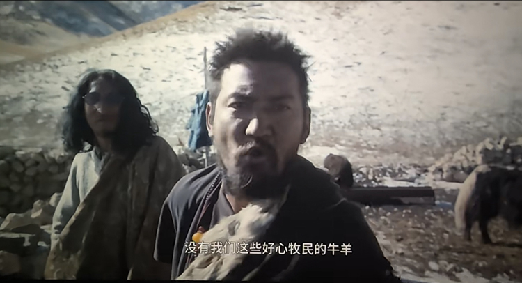 當(dāng)然,影片還出現(xiàn)了許許多多新生事物,蘋果手機(jī)、平板電腦、紅外攝像機(jī)、挖掘機(jī),微信、BBC紀(jì)錄片,古老的牧人、傳統(tǒng)的生活與現(xiàn)代社會(huì)、科技產(chǎn)品毫無(wú)距離。