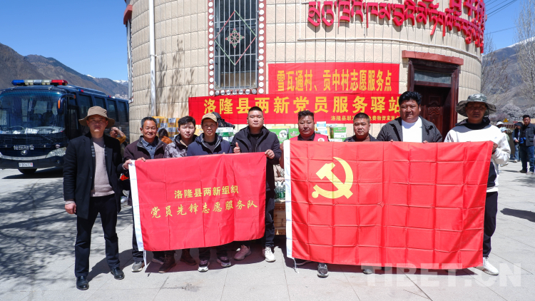 圖為洛隆縣兩新工委黨員先鋒志愿服務(wù)隊在俄西