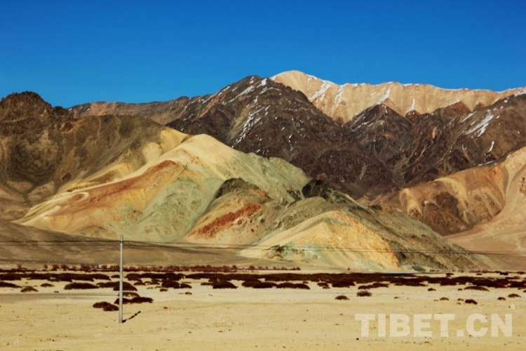 阿里地區(qū)地形復雜多樣,大致分為高原湖盆區(qū)、高山寬谷區(qū)、高山峽谷區(qū)三種形態(tài)。高海拔、高寒、日照時間長且輻射強等自然條件,使得阿里地區(qū)不僅擁有雄渾壯麗的高原風光,而且隨海拔、光照、季節(jié)、山體巖層所含礦物質(zhì)種類等因素呈現(xiàn)出色彩繽紛的變化。圖為阿里地區(qū)噶爾縣一處多彩的山體 攝影:劉莉