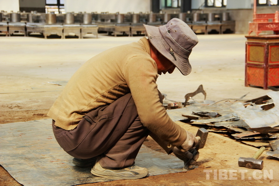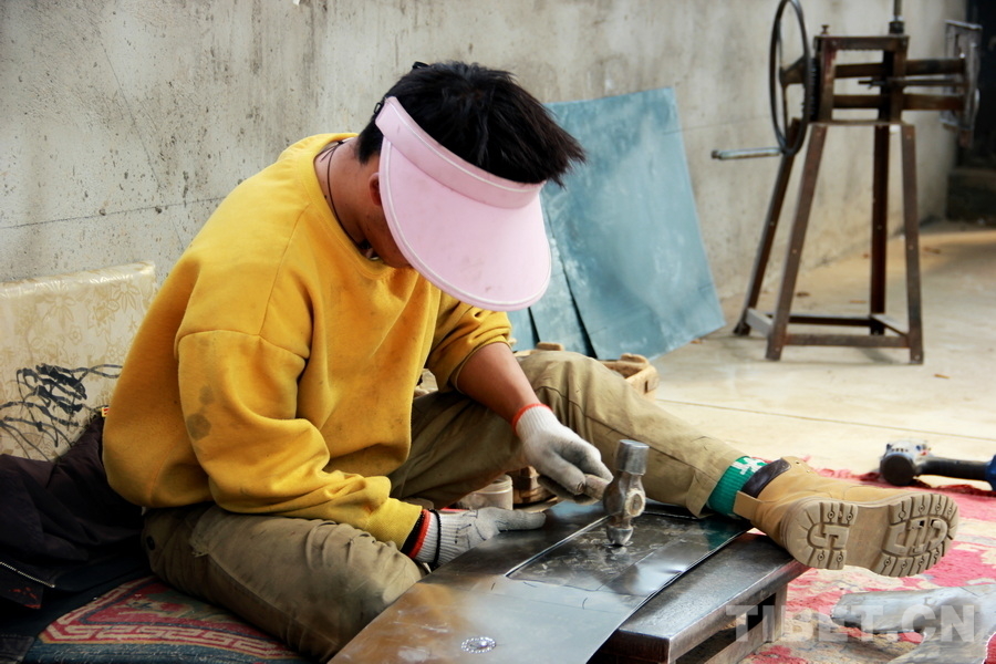 圖為西藏自治區(qū)日喀則市昂仁縣江嘎村村民正在制作江嘎鐵爐 攝影:劉莉