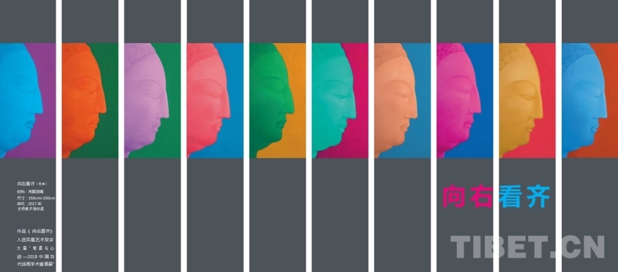 在創(chuàng)作過程中,陶宏嘗試將傳統(tǒng)佛像藝術(shù)與現(xiàn)代油畫技法相結(jié)合,融入現(xiàn)代審美元素和時(shí)代精神。“我希望用西方的觀念來表達(dá)東方精神,這就是互鑒與融合。”陶宏的油畫作品《漢字雕塑》《覺者》、《向右看齊》等受到沃霍爾、克洛斯的影響,中外文化在時(shí)空的交融與碰撞中,即刻產(chǎn)生出新的觀念。借助現(xiàn)代藝術(shù)手法和觀念,陶宏嘗試對(duì)佛像藝術(shù)進(jìn)行解構(gòu)與重塑。通過打破傳統(tǒng)的創(chuàng)作界限,將佛像與周圍環(huán)境、人物以及情感進(jìn)行融合,創(chuàng)造出一種新的藝術(shù)表達(dá)方式,更加自由、開放。