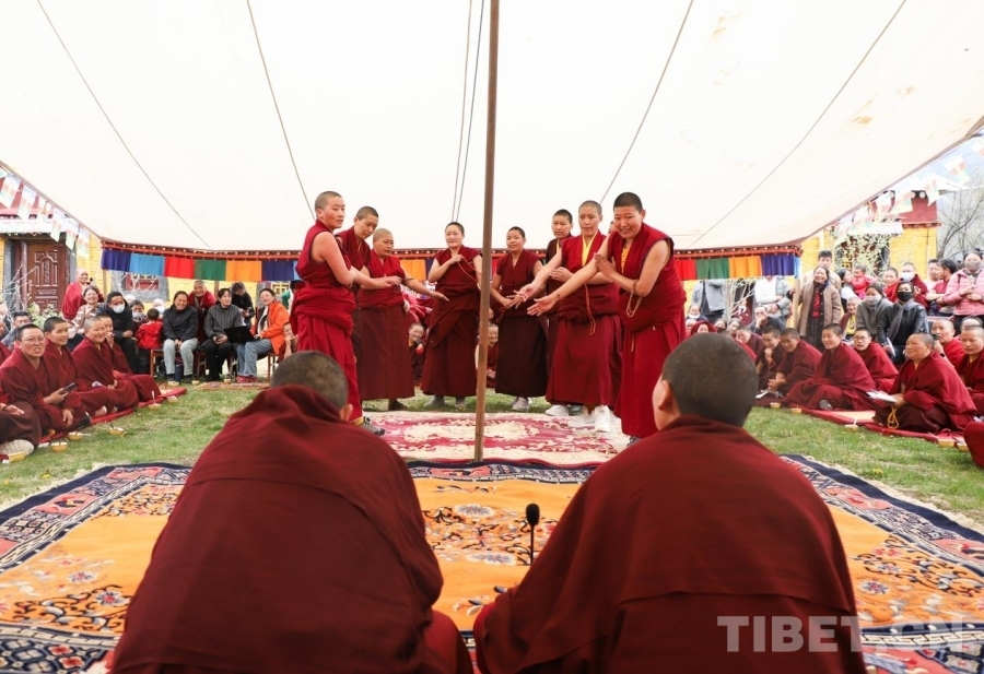 圖為尼眾辯經(jīng)現(xiàn)場(chǎng)