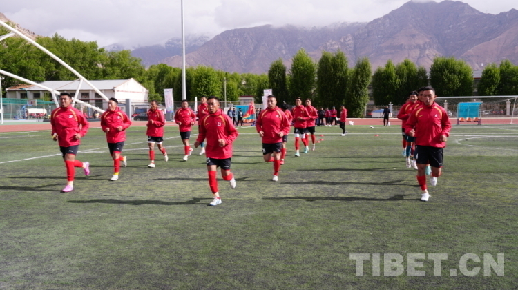 圖為昌都市足球代表隊(duì)賽前熱身 攝影:旦曲