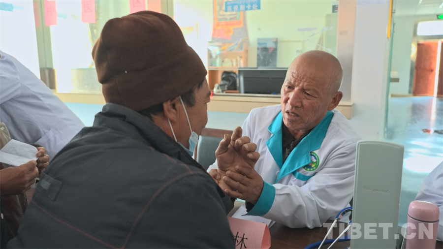 圖為藏醫(yī)專家正在為患者把脈診治 攝影:達瓦扎巴