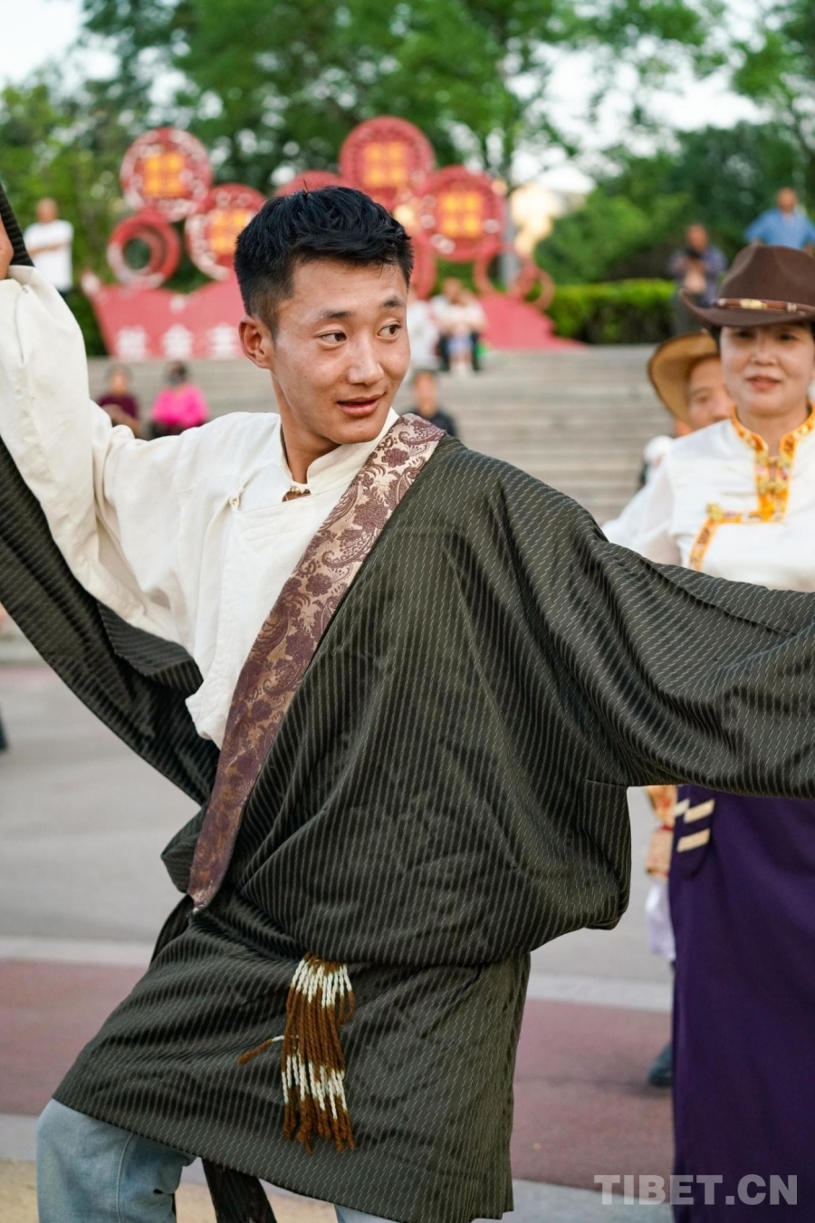 我坐在舞臺側邊的位置,等待他們進行彩排,聽到一聲熟悉的聲音叫我“姐”,我一回頭,原來是小志?!澳阍趺磥砝??隊里忙嗎?”他和我聊了最近的工作生活,單位在了解到他為推廣和傳承傳統藏舞的經歷后,也對此表示支持,希望他能在干好本職工作的同時,也帶著心中的熱愛把家鄉(xiāng)的傳統文化傳得更遠更廣。