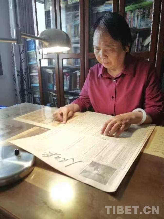 圖為慕曉峰在翻閱當年人民日報關(guān)于青藏公路的報道 受訪者供圖