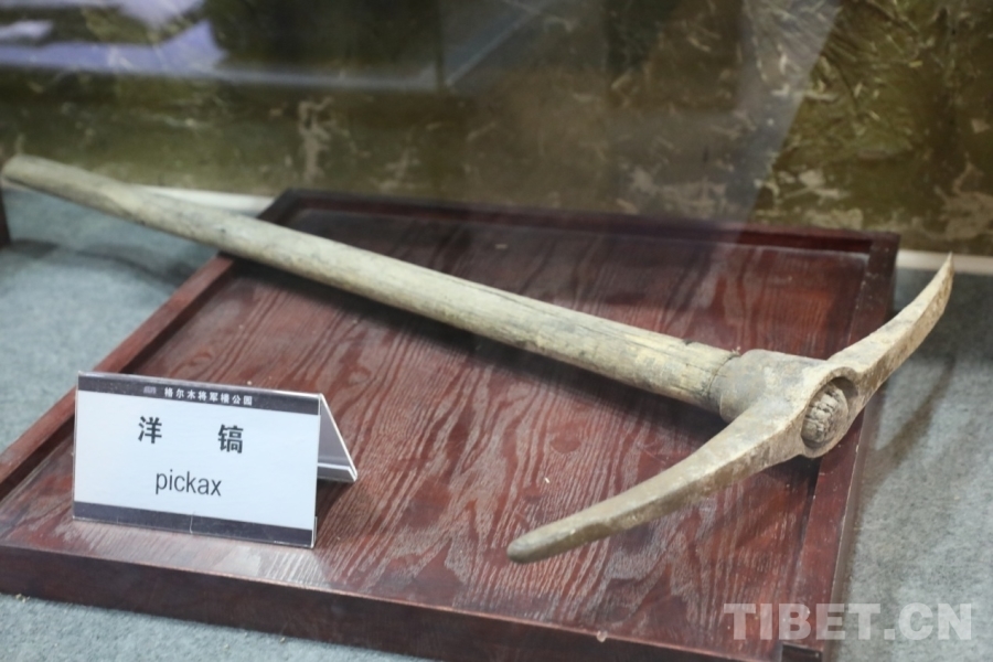 圖為格爾木將軍樓公園青藏公路紀念館內(nèi)的展品——洋鎬