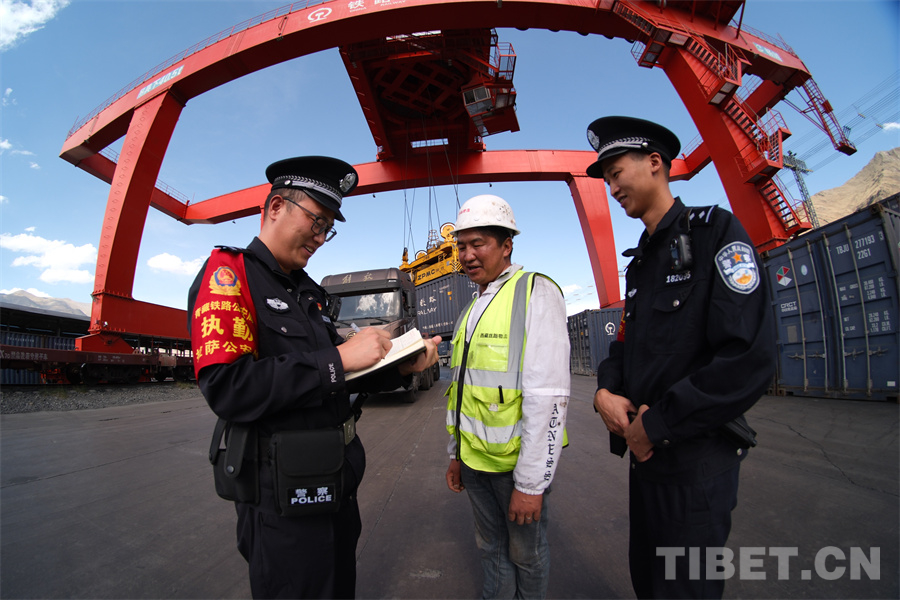 拉薩西站貨場(chǎng)是西藏自治區(qū)最大的鐵路物流集散中心,圖為該站派出所民警定期開展安全知識(shí)及法治宣傳