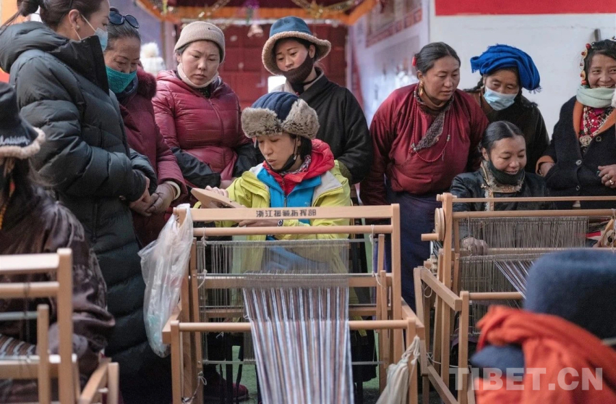 2020年,“小巷三尋”公司負責人鄭芬蘭帶領10人團隊、帶著50臺新式織布機,跨越4000多公里的青藏線,從杭州出發(fā)前往西藏那曲,為那曲當地牧民群眾帶去更加現(xiàn)代化的生產工具。經過一路顛簸,一到那曲,鄭芬蘭和隊員們便克服海拔4500米高原反應帶來的身體不適,開始組裝織布機。