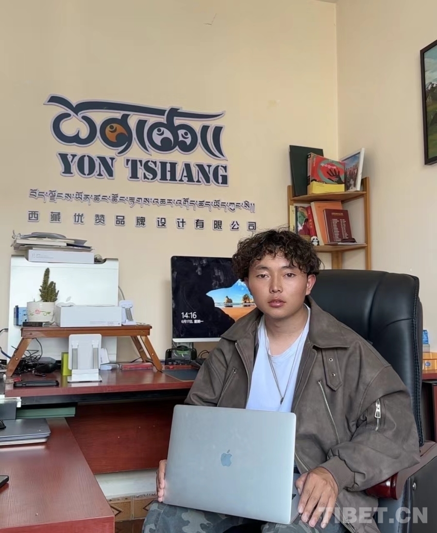 次仁頓珠是學(xué)院2022年平面設(shè)計(jì)專業(yè)的畢業(yè)生,也是全國第一屆職業(yè)技能大賽“西部技能之星”獲得者,我們到訪時(shí)他剛好回校做單元展。次仁頓珠畢業(yè)后和四個(gè)合伙人一起在拉薩創(chuàng)業(yè),創(chuàng)辦了優(yōu)贊品牌設(shè)計(jì)有限公司,主要業(yè)務(wù)包括產(chǎn)品包裝設(shè)計(jì)、logo設(shè)計(jì)和品牌設(shè)計(jì)。創(chuàng)業(yè)伊始全靠幾個(gè)合伙人自己出去推銷,如今經(jīng)過老客戶口口相傳,很多客戶主動來找他們,生意越來越好?!皠?chuàng)業(yè)兩年多,我大概分紅了40多萬,今年我們幾個(gè)合伙人都買了車。未來我們計(jì)劃擴(kuò)大公司的店面,好好裝修,然后開始線上直播,以后在拉薩買了房子從昌都接?jì)寢屢黄饋碜??!贝稳暑D珠向我們介紹,笑容中帶著羞澀與驕傲。