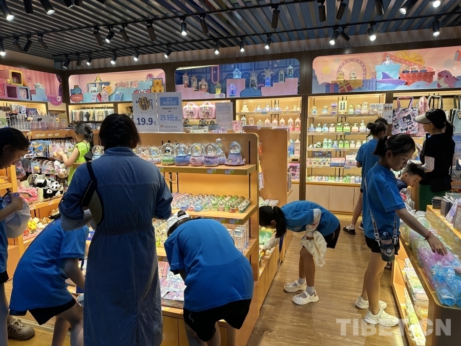 圖為學(xué)生們?cè)谶x購(gòu)紀(jì)念品 攝影:楊眉笑