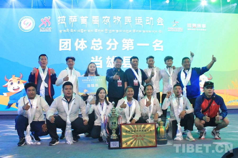 圖為團(tuán)體總分第一名當(dāng)雄縣代表隊(duì)合影 攝影:張曉琪