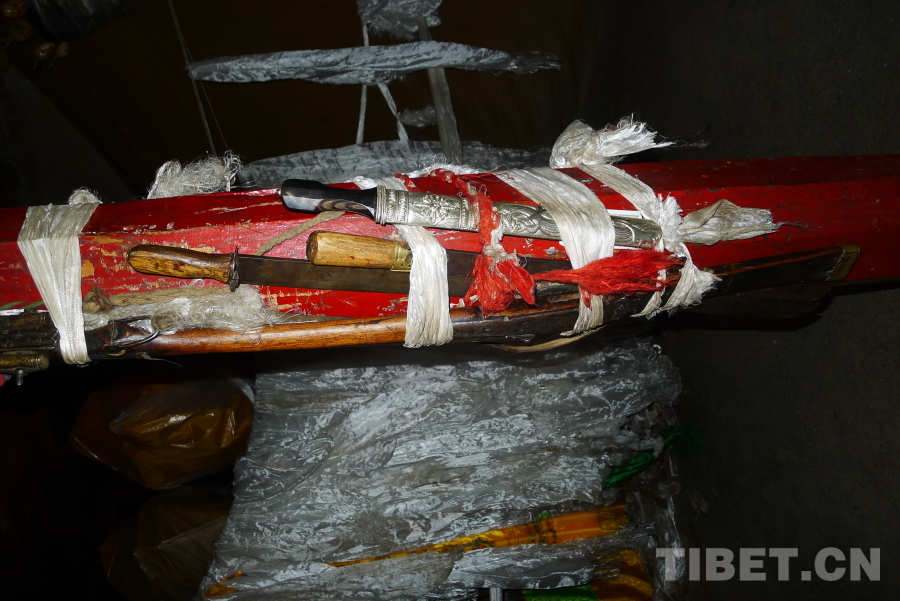 曾在抗英戰(zhàn)爭(zhēng)時(shí)使用過的武器,至今留存乃寧寺。攝影:平措扎西