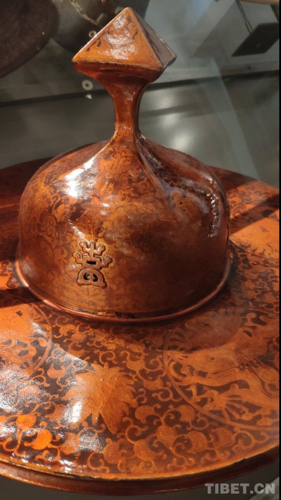 14號(hào)藏品漆繪帽上精美繁復(fù)的花紋圖案