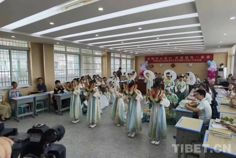 通過開展活動聯(lián)誼豐富交流內容打造特色活動品牌,圍繞民俗文化、人文地理、美食美景等內容交流互動,學生穿著民族服飾,互學方言共同表演經典誦讀《上春山》、古箏表演《三字經》《國風美少年》、鍋莊表演《強巴曲?!返裙?jié)目,展示了中華民族優(yōu)秀傳統(tǒng)文化,進一步增進學生之間的文化交流不斷增強學生“五個認同”。